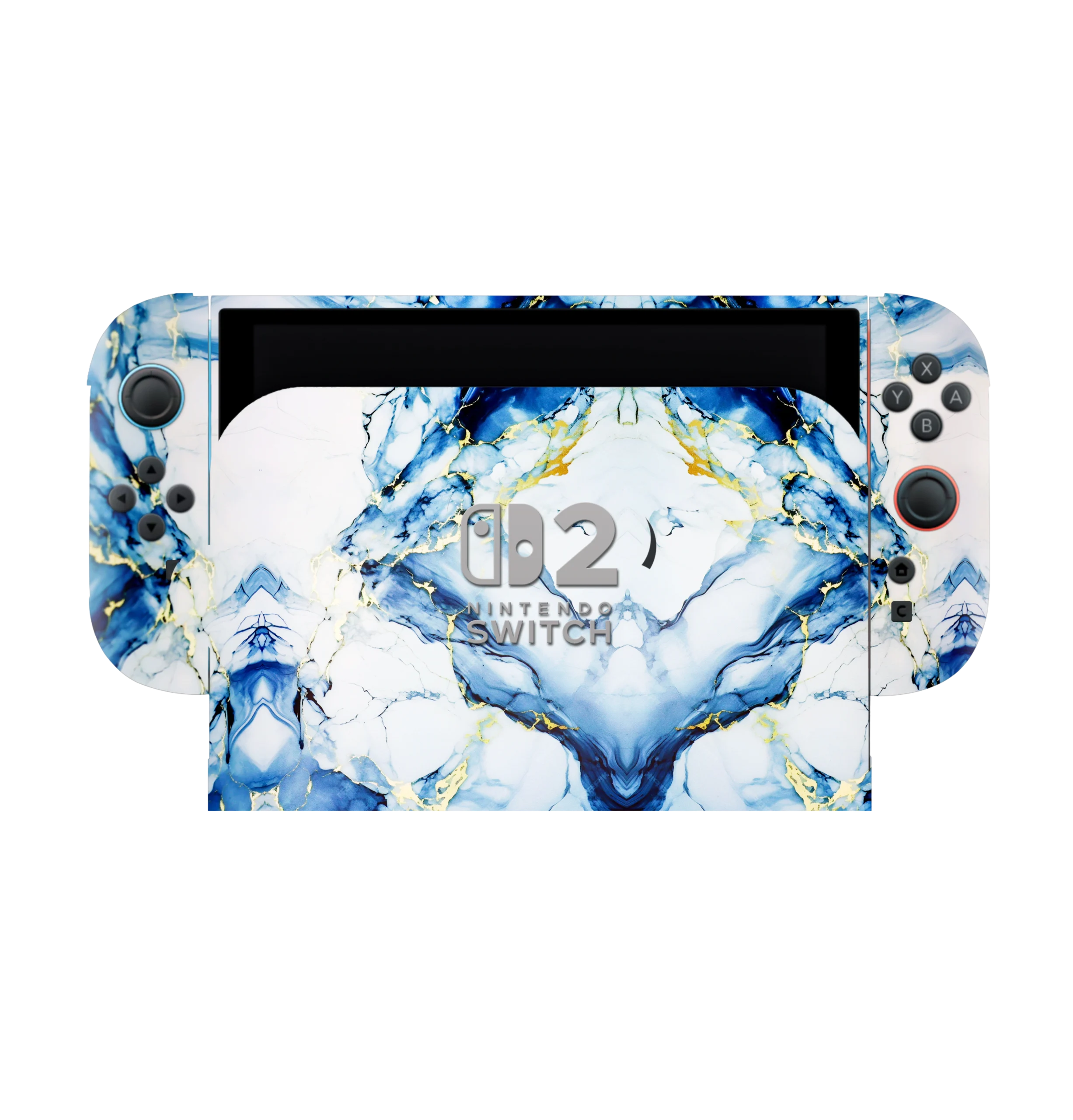 Precision cut for a perfect fit Designed with a sleek, premium quality, while keeping your device lightweight and scratch-free. Easy to apply and residue-free on removal, these skins let you showcase elegance while keeping your phone safe from everyday wear. Blue Gold Marble Nintendo Switch Skin Wrap