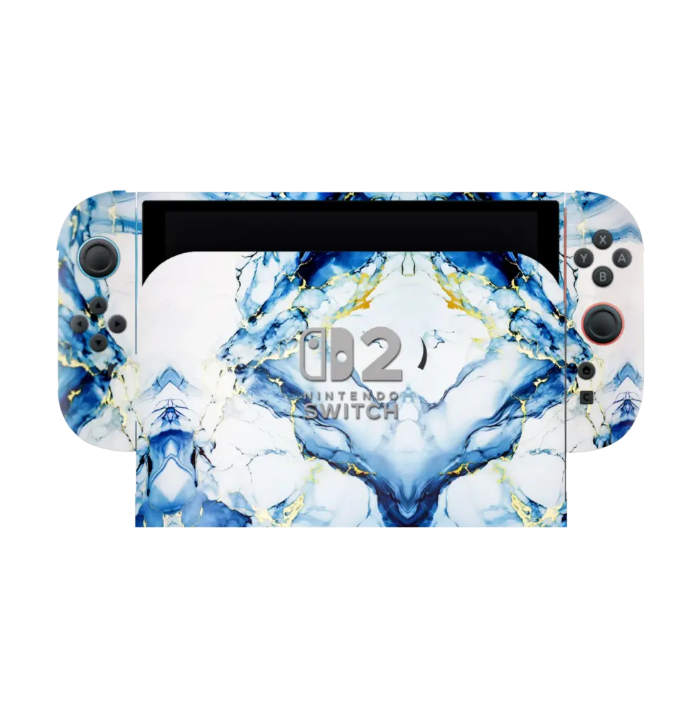 Blue Gold Marble Nintendo Switch Skin Wrap