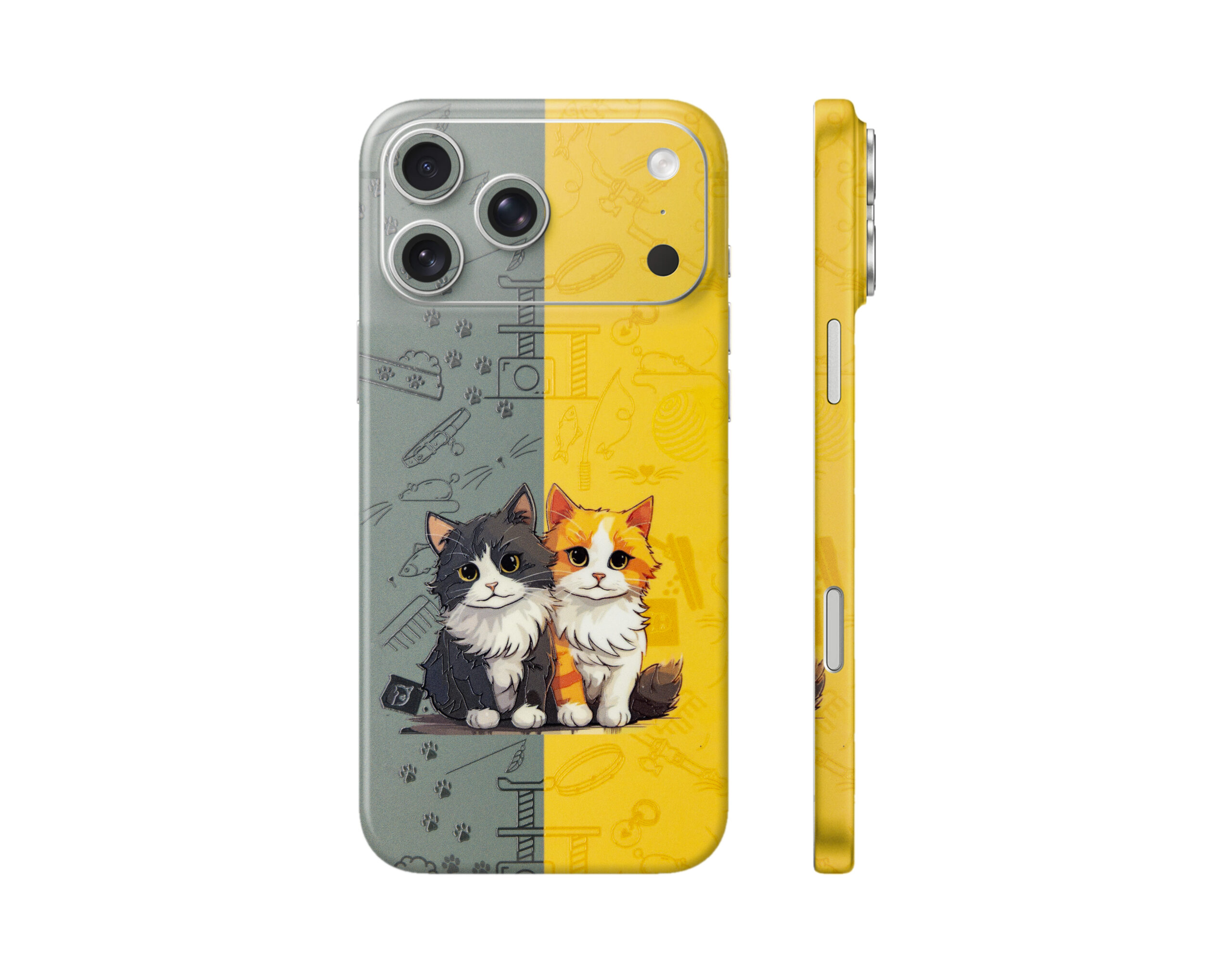 Cute Twin Cat Skin Wrap for iPhone 17 Series | Aesthetic Pet Phone Skin