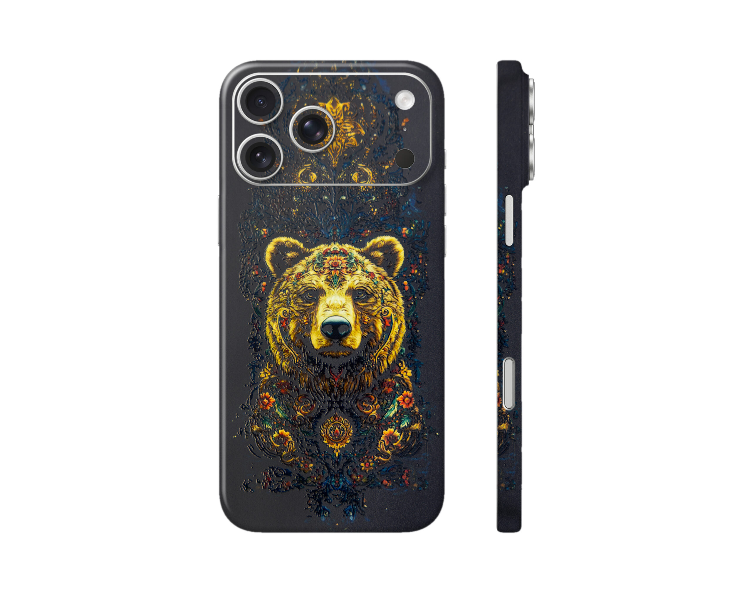 Golden Bear Phone Skin Wrap stands out as a bold and artistic statement. Featuring a powerful bear illustration with intricate floral patterns and a dark aesthetic background, this skin is designed for those who want more than just protection—they want identity.