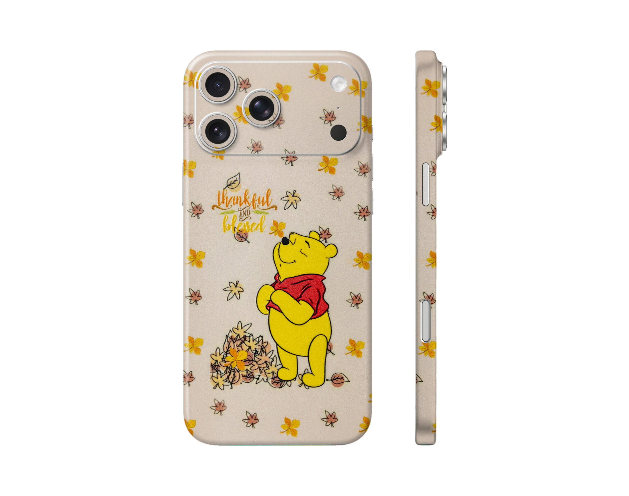 Add a touch of warmth and cuteness to your phone with this premium embossed cute bear iPhone 17 series mobile skin. Featuring an adorable cartoon bear with a soft floral pattern and “thankful & blessed” aesthetic, this skin is perfect for those who love minimal, aesthetic, and cozy designs.