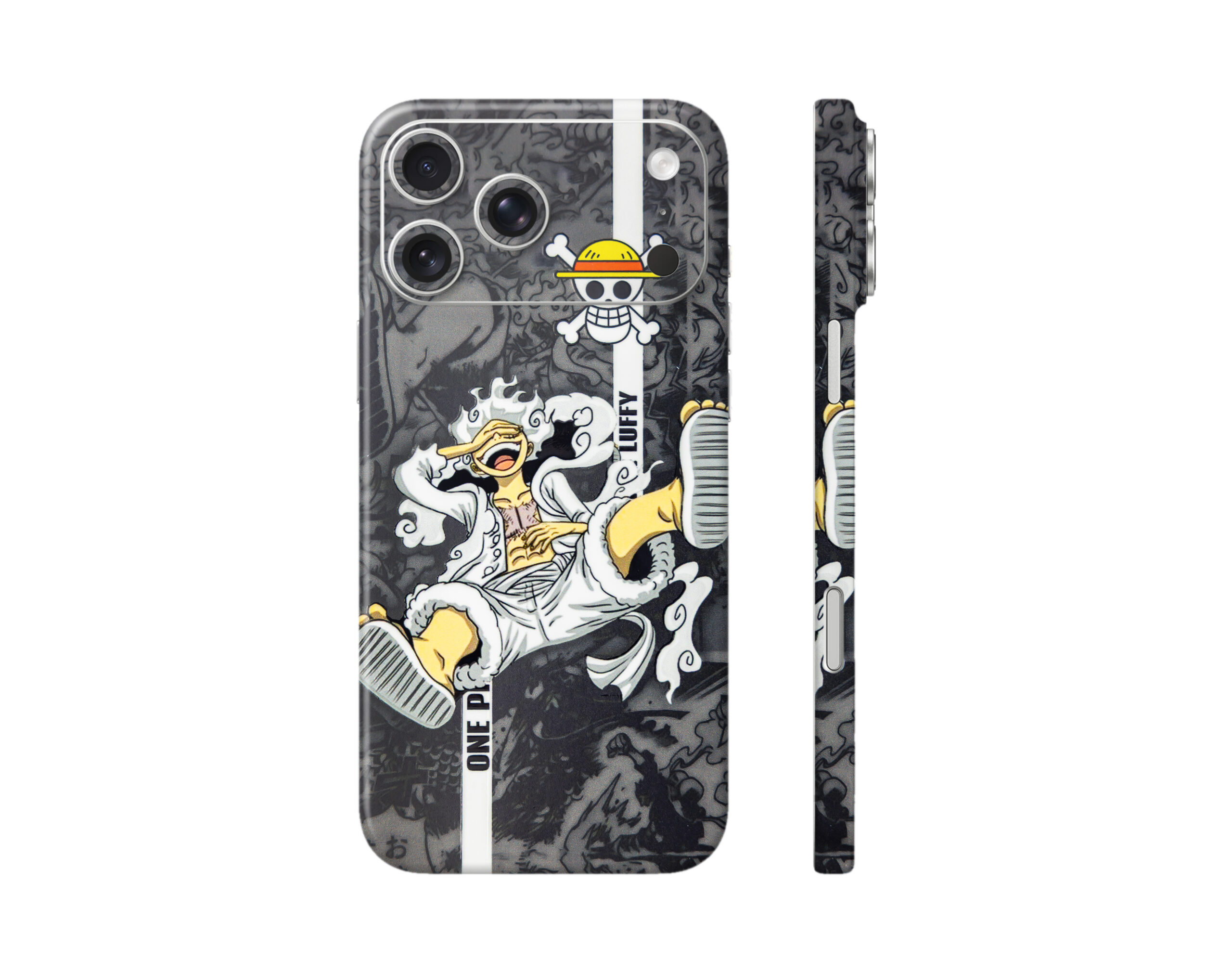 Unleash the ultimate anime vibe with this premium embossed Gear 5 Luffy iPhone 17 series mobile skin, inspired by the iconic transformation from One Piece. Designed with a bold monochrome background and vibrant Luffy artwork, this skin delivers a perfect mix of style, durability, and premium finish.