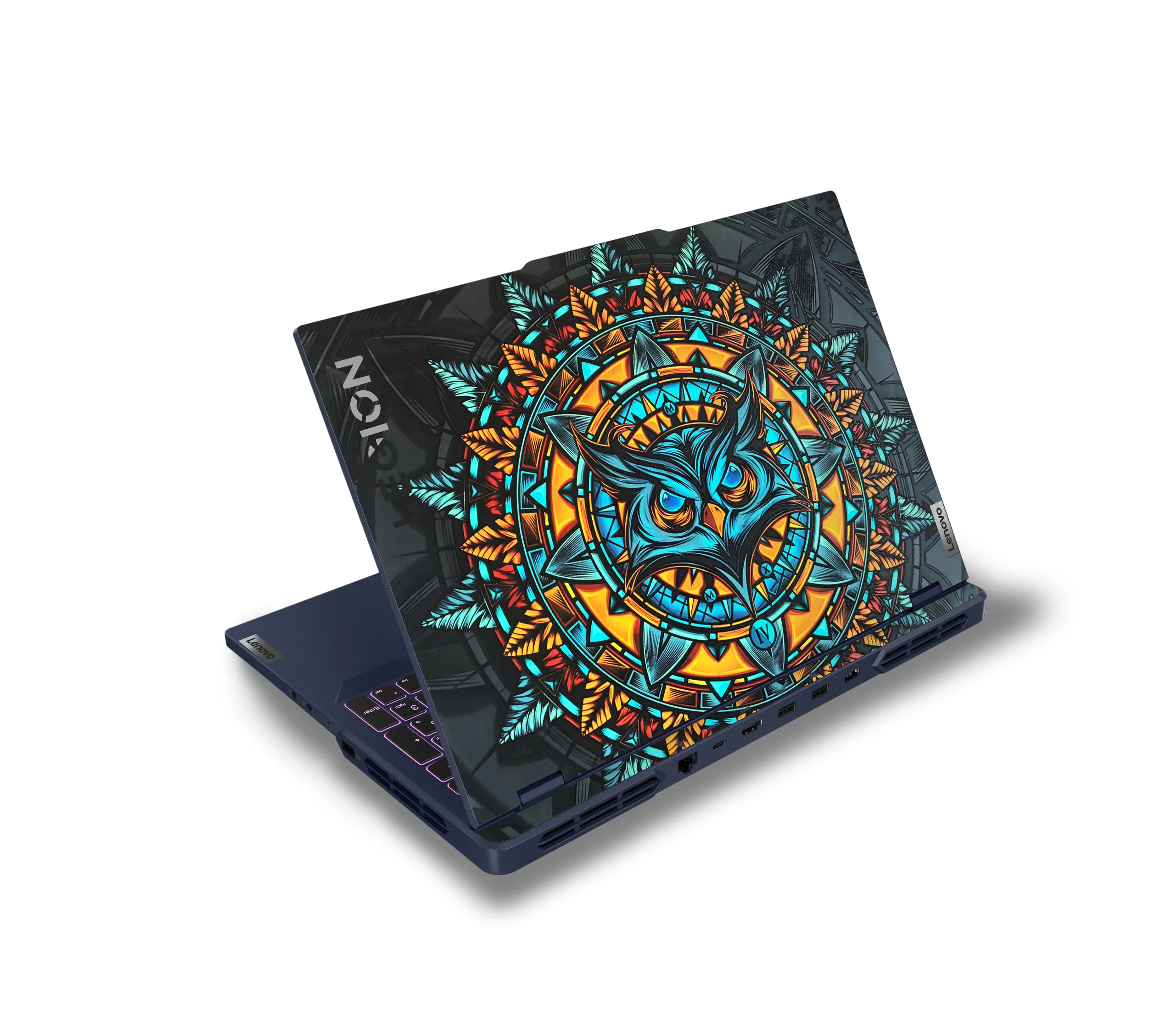 The Tribal Print Owl laptop skin stands out immediately with its bold, artistic presence. The tribal owl graphic is striking yet tasteful, blending symbolic depth with modern design sensibilities. The embossed texture is a differentiator; it gives the skin a premium feel that flat decals rarely achieve. Light catches the raised sections in a way that highlights detail without making the surface look overly busy.